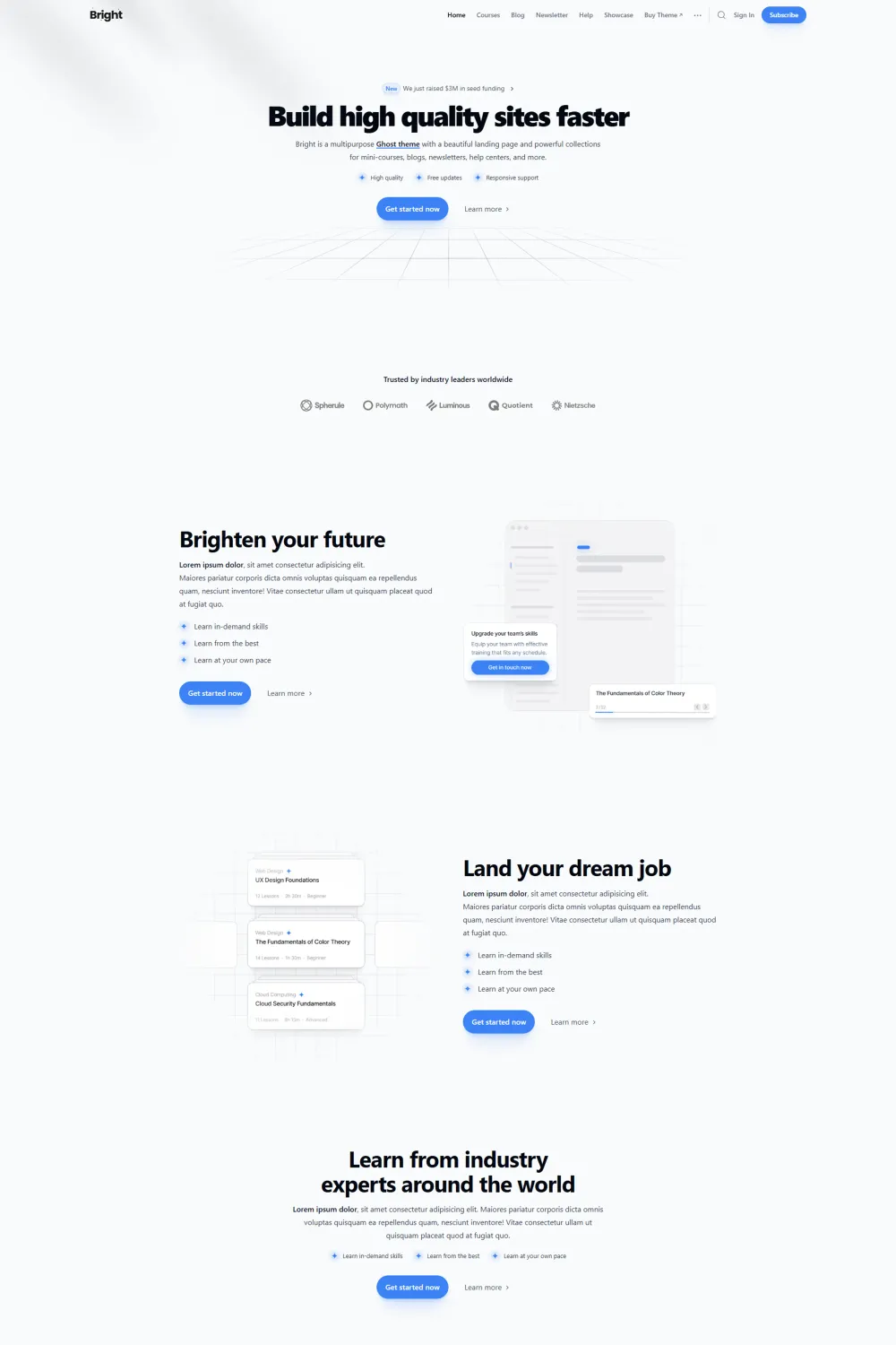 Bright is a versatile and feature-rich Ghost theme developed by Spiritix, designed to cater to a wide range of content creators. Whether you're a blogger, educator, or business owner, Bright offers a comprehensive solution to build a professional and engaging online presence.