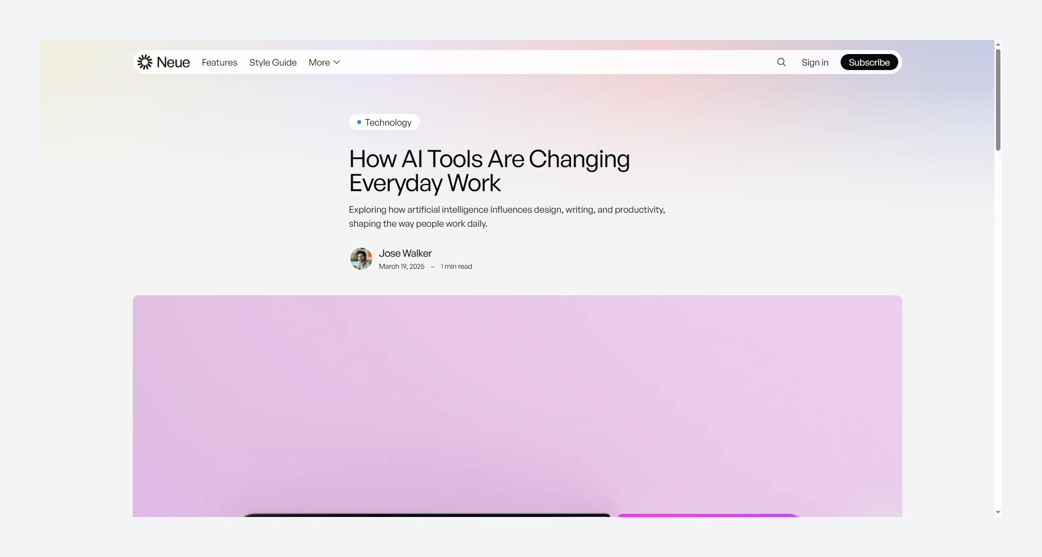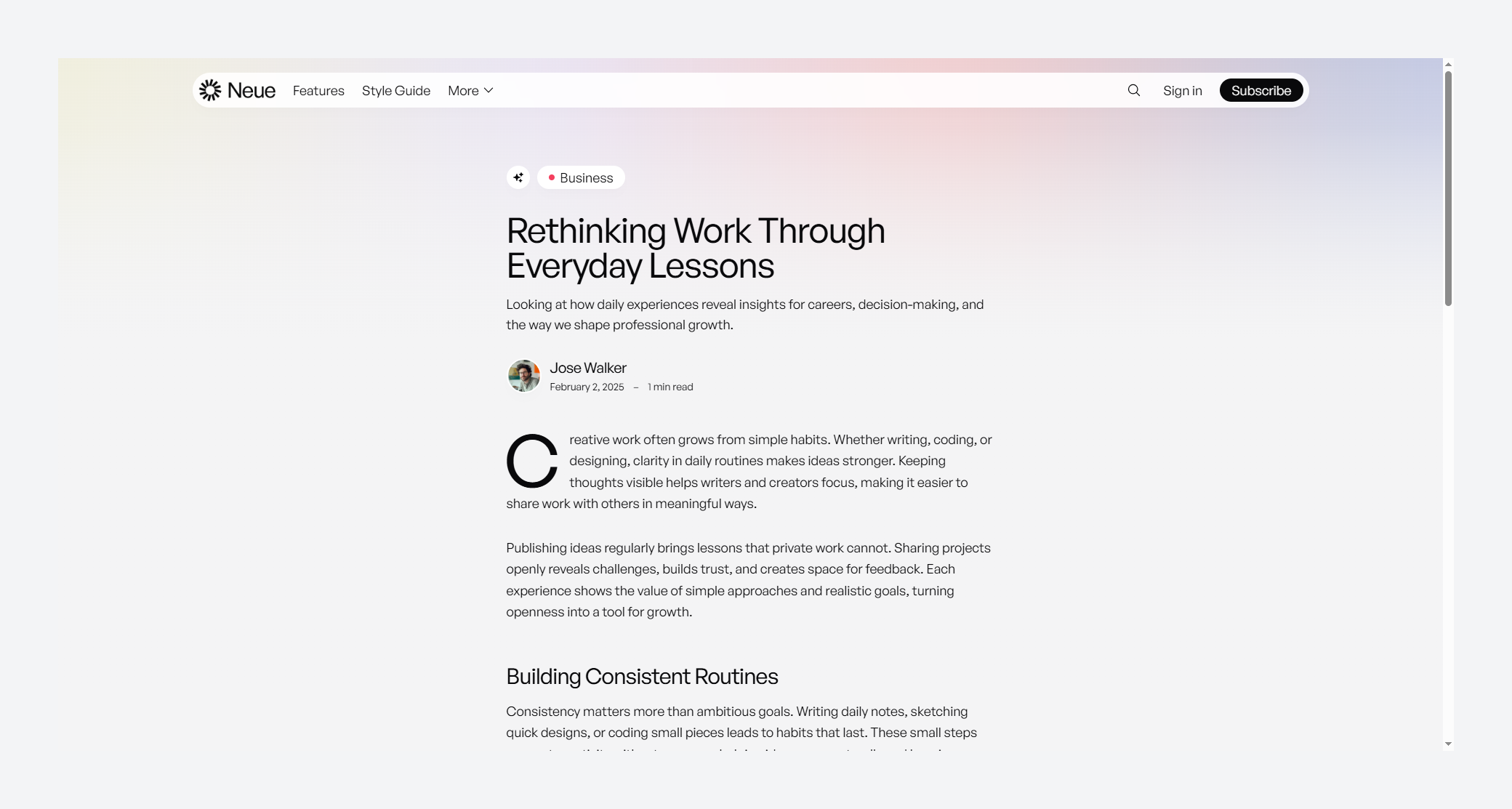 If you’re building a clean, modern magazine-style Ghost site and want to launch fast, Neue is an easy recommendation. The built-in Ghost features, simple design controls, and flexible post layouts make day-to-day publishing smooth. Tighten accessibility and you’ll have a future-proof, reader-friendly publication with minimal overhead.